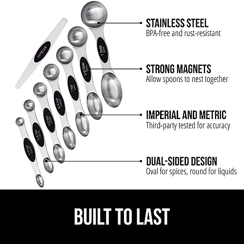 Gorilla Grip 8 Piece 100% BPA Free Magnetic Nesting Stainless Steel Measuring Spoon Set with Leveler, Dual Sided for Liquid and Dry Ingredients, Cream and Sugar Kitchen Spoons, Baking, Cooking, Black