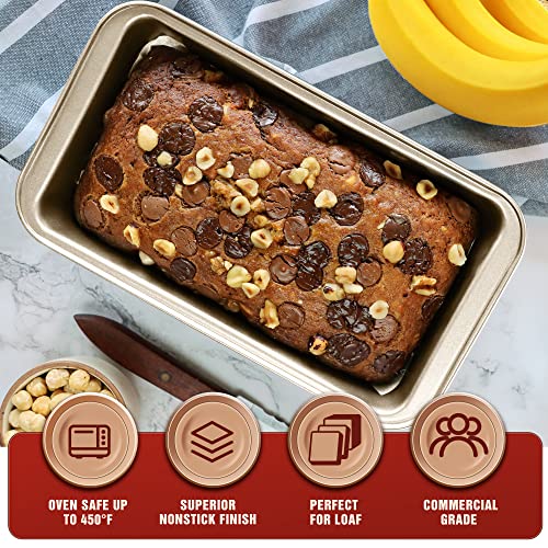 KITESSENSU Bread Pan, Nonstick Loaf Pan with Easy Grips Handles, Carbon Steel Loaf Pans for Baking, Bread Pans for Homemade Bread, Brownies and Pound Cakes, Set of 2, Champagne Gold