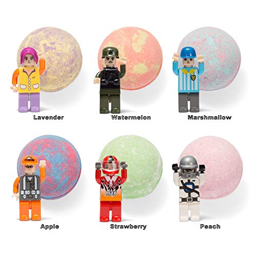 VALUE SET: JOYIN Kids Bath Bomb Gift Set includes 6 bath bombs (5 oz) with assorted mini boys and girls figurine toys inside. These bath balls are rich and full of shea butter & coconut oil, which help moisturize and smooth your dry skin