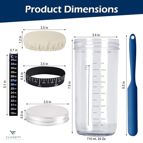 Complete set: The kit includes 24 oz wide mouth jar, a durable, rigid spatula for mixing and feeding, an elastic, stay-in-place feeding band to keep your starter fresh, accurate thermometer for finding right storage temperature, and a breathable cloth cover to prevent evaporation, and an alumiumum lid for long-term refrigerator storage. The best tasting breads begin with a Natural Leavener fermented using this amazing little starter kit.