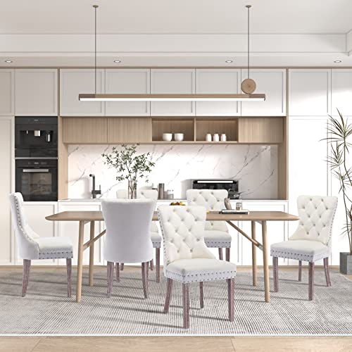 Bonzy Home Dining Chairs Set of 6,Velvet Tufted Upholstered Room Chairs with Nailhead Trim,Kitchen Chair with Solid Wood Legs,Beige