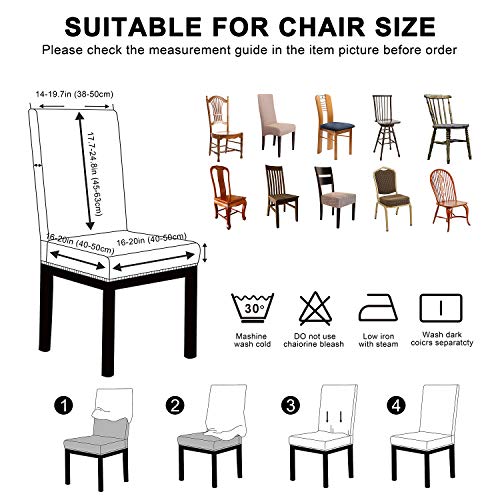 ?Perfect Fit?Stretch dining chair covers fit for normal and high back parson chair. Back Height 17.7-24.8inch(45-63cm);Seat Length 16-20inch(40-50cm); Seat Width 16-20inch(40-50cm). Kindly check measurement guide in the picture and measure your chairs before ordering