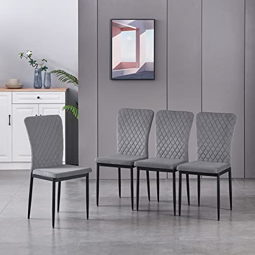 FENZARD Set of 4 Living Room Chairs Dining Chairs with Velvet, High Back, Metal Frame and Modern Lattice Design for Living Room, Dining Room, and Classroom,Grey