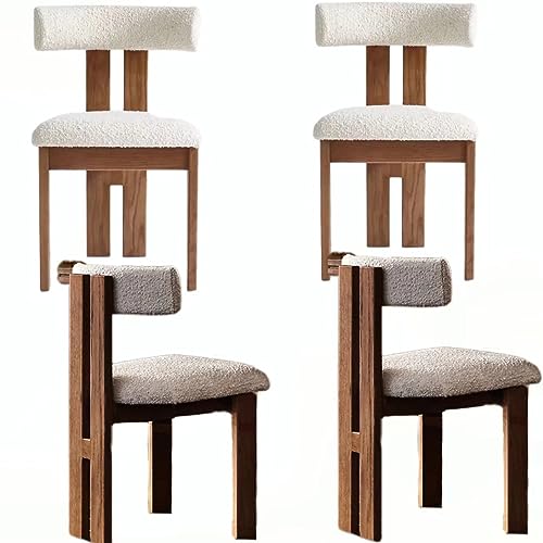 KLOVIA Mid Century Dining Chairs Set of 4 Comfortable PU Wooden Side Chairs with Sherpa Upholstered Curved Open Back Farmhouse Kitchen Chairs Set for Indoor/Living Room/Anteroom, Brown (A01)