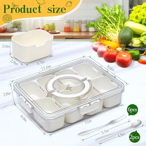 • Convenient Design: This snackle box container with 2 spoons and 6 forks features eight separate compartments, which ensures your snacks not being mixed and stay organized and fresh. Made of food-grade material, our divided serving tray with lid is quality, good sealed, sturdy and odorless, perfect for picnics, road trips, or simply enjoying meal at home.