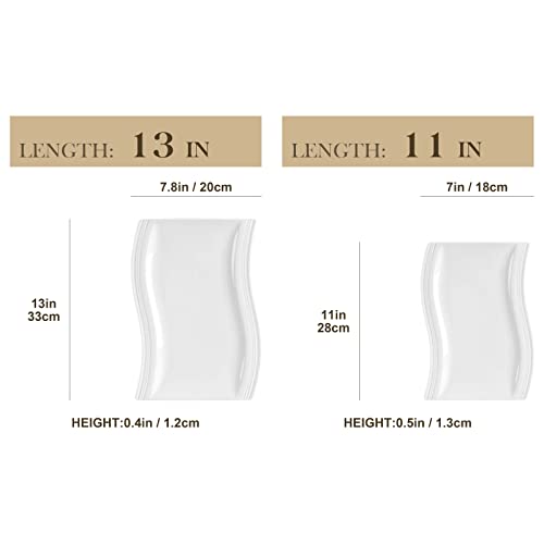 MALACASA Serving Platter, 13/11inch Serving Dishes for Entertaining, Porcelain Rectangular White Trays for Party Banquet Dinner Sushi Dessert Appetizer Christmas Housewarming Gift, Series Flora