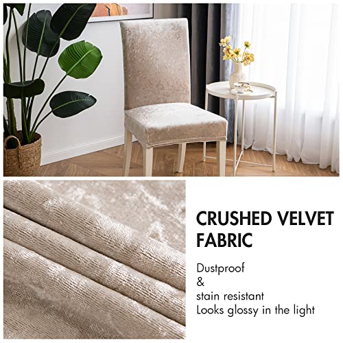 MIULEE Velvet Chair Covers for Dining Room Set of 6 Stretch Soft & Thick Crushed Velvet Chair Slipcover for Kitchen Decorative Parson Chair Seat Cover with Shimmer for Party Ceremony Cream Beige