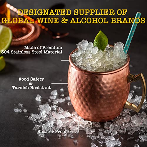 Moscow Mule Mugs Set of 9 – 20oz Hammered Moscow Mule Mugs Drinking Cup 304 Stainless Steel with 4 Straws-1 Jigger-Great Dining Entertaining bar Gift Set Mug Set of 4 (double jigger included)