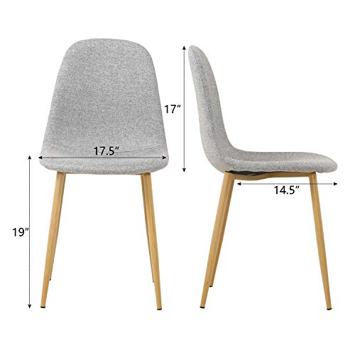 The Modern design of 5 Pieces Dining Set offers a elegance to your home. Crafted of durable metal construction with a tempered glass tabletop and surrounded by comfortable fabric chairs with wood like metal Leg.