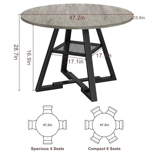EXTRA LARGE STORAGE SPACE: A Thoughtfully designed storage shelf is perfect for organizing tableware and kitchen essentials, keeping them easily within reach. It helps maintain a clean, clutter-free tabletop while providing convenient access to everything you need. Round dining table maximizes the usable area of ??the dining table,47-inch round dining table set for 4, ideal for family meals and gatherings.