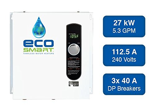 EcoSmart ECO 27 Electric Tankless Water Heater, 27 KW at 240 Volts, 112.5 Amps with Patented Self Modulating Technology,White