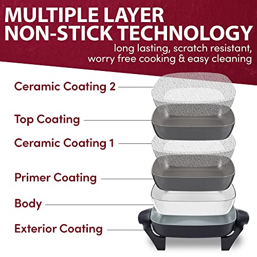 Elite Gourmet EG2212 12″x12″x2.15” Healthy Ceramic Coated Electric Skillet, Dishwasher Safe, Rapid Heat Up, 1200W, Dark Grey