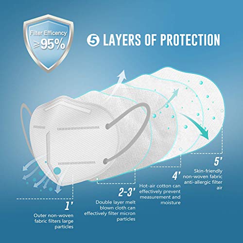 ??Multi-effect Protection 5-Layer Face Mask?High breathable 5-ply protection cup dust masks use standard safety materials. The outermost 1 layer non-woven fabric can filter large particles, middle 2-layer melt-blown fabric can block more then 95% particles, 1 layer hot air cotton can filter pm2.5 and the innermost 1 layer non-woven fabric is skin-friendly and softer that give you the comfortable usage experience at the same time it protects your breath with high filter efficiency.