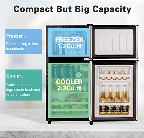 Anukis Compact Refrigerator 3.5 Cu Ft 2 Door Mini Fridge with Freezer For Apartment, Dorm, Office, Family, Basement, Garage, Silver