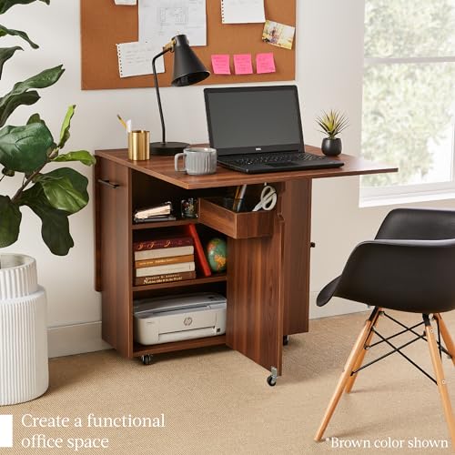Best Choice Products Folding Dining Table, Multipurpose Space Saving Collapsible Drop Leaf Extension Desk w/Wheels, 3 Storage Shelves – Sage Green