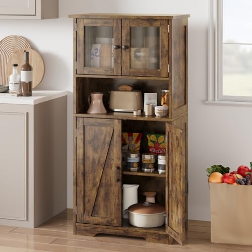 Home » Kitchen & Dining Furniture » IDEALHOUSE Bathroom Storage Cabinet, Freestanding Floor Linen Storage Cabinet with Doors and Shelves, Wooden Kitchen Pantry Storage Cabinet, Cupboard, Storage Cabinet for Living Room,Rustic Brown
