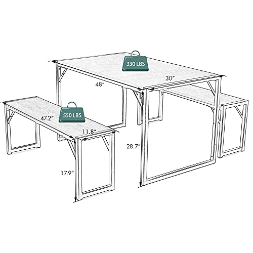 IMusee Modern Industrial 3-Piece Soho Dining Table Set, Metal Frame and MDF Board, Dining/Kitchen Table Set with Benches, Sturdy Structure, Space-Saving Furniture