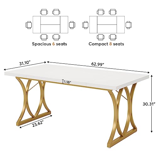 Tribesigns Modern Dining Table for 6 People, 63 L x31W x 30 H Inches Rectangle Kitchen Table Dinner Table for Dinning Room&Kitchen, Living Room,White & Gold