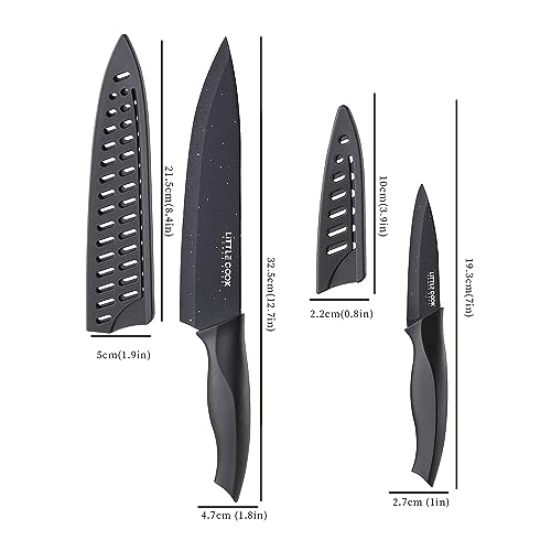 Chef Knife, Little Cook Ultra Sharp Kitchen Knife, German Stainless Steel Chef Knife Set, Includes 8 inch Chef’s Knife, 4 inch Paring Knife and 2 Matched Knife Sheath (Black)