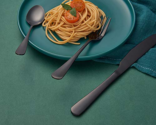 SUPERIOR QUALITY – Made of premium rustproof black stainless steel, will not bend or wrap. Remarkably balanced in the hand, each utensil is ergonomically designed to correctly fit the way we naturally eat. Dishwasher safe for easy cleaning.