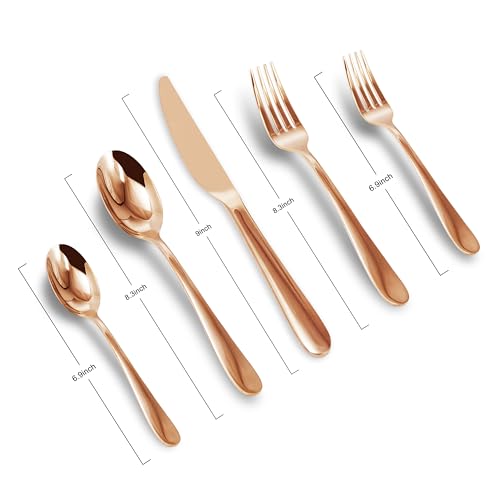 Silverware Set,20 Piece Stainless Steel Silverware Set For 4,Stainless Steel Flatware Set for Home, Kitchen, Mirror Polished&Dishwasher Safe (Simple style, Pink-Gold)