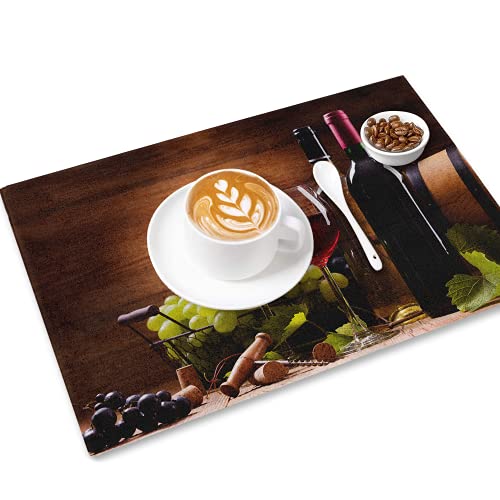 Rectangle Placemats Set of 4 for Christmas/Thanksgiving Dinners Table Washable Woven Linen Placemat Non-Slip Heat Resistant Kitchen Table Mats Red Wine Grape Art