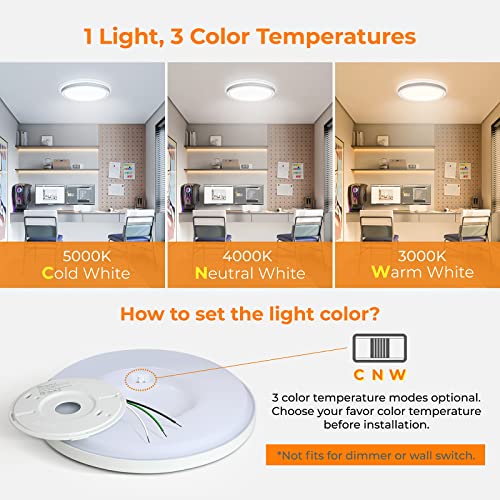 LED Flush Mount Ceiling Light, BLNAN 8.66 Inch 18W 3000K/4000K/5000K Hardwire Light Fixture, Ultra Thin Round White Lamp for Kitchen Porch Bedroom Hallway Stairwell Basement, Non-dimmable 1 Pack
