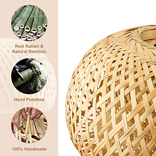 Yarra Decor Rattan Pendant Light with Dimmable Switch, 15ft Hemp Cord Handwoven Boho Bamboo Rattan Lamp Shade Plug in Hanging Light, Rattan Light Fixture for Kitchen Island,Dining Room(Bulb Included)5