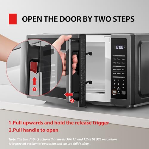 Two-Step Child Lock: This mandatory safety feature for microwaves helps prevent unintended use by younger family members, plesase open the machine according to the steps shown in the figure.