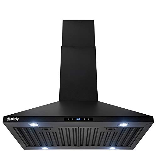 AKDY 30″ Island Mount Black Painted Finish Stainless Steel Touch Panel Kitchen Range Hood Cooking Fan