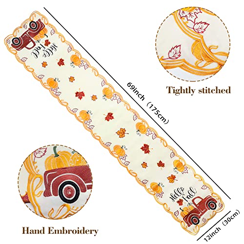 Embroidered Fall Table Runner, Truck Fall Table Runner, Hello Fall Table Runner, Farmhouse Seasonal Table Decor for Autumn, Thanksgiving?13*67inch?
