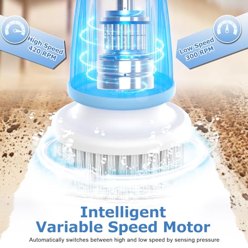 Kecoreay Electric Cleaning Brush 2024 Update,Power Scrubber with 7 Replacement Heads, Intelligent Shifting, Digital Display, Handheld Scrubbers for Cleaning Bathroom, Tub, Tile, Floor, Car/Blue