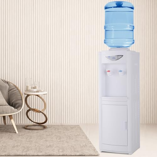 Huhelm Top-Loading Hot&Cold Water Cooler, Freestanding Water Cooler Dispenser 5 Gallon Children Safety Lock with Removable Drip Tray and Large Storage Space for Home Office School (White)