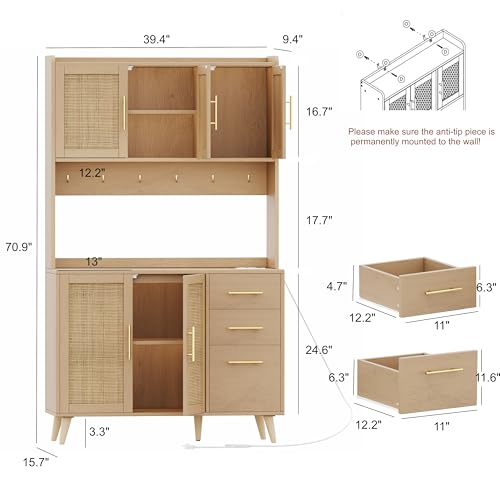 Click for More Images OVERALL DIMENSIONS: 71" H x 31" L x 16.34" W, Drawr Dimensions?4.72" H x 29" L x 11.81"D. Perfect for organizing pantry staples, kitchen gadgets, and more, this pantry offers the ultimate solution for keeping your kitchen...