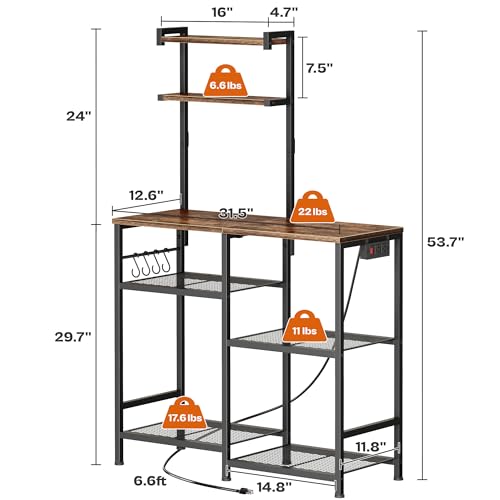 Click for More Images ?Strong Desktop Support & Spacious Countertop?This desktop of the kitchen bakers rack is built stronger! Its wide, sturdy surface easily fits your microwave, air fryer, or coffee machine — giving you a solid station that...