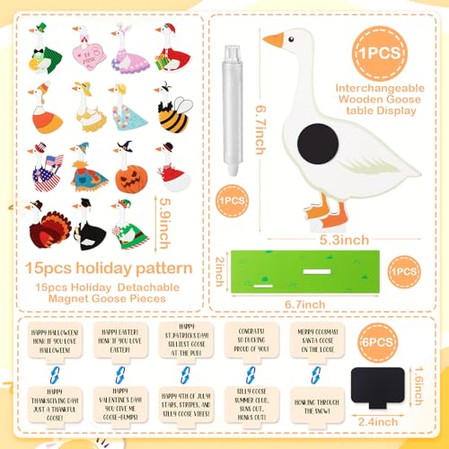 Click for More Images Package Includes: you'll receive a holiday interchangeable wooden goose table decoration set, including 1 pcs wooden goose table centerpiece, 15 pcs wooden holiday DIY goose magnetic ornaments, 1 pcs wooden base, 5 pcs...