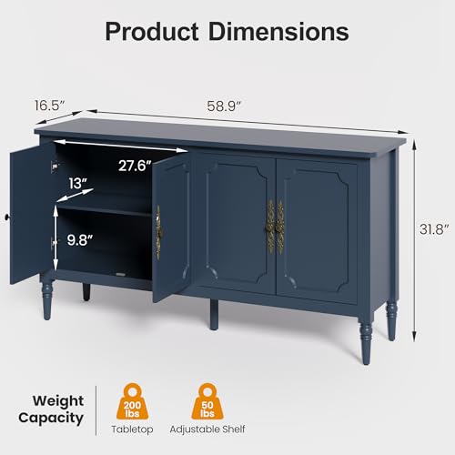 Click for More Images Exuding Elegance & Sophistication: This decorative Sideboard features intricately carved antique bronze handles paired with graceful solid wood legs. Enhanced by a smooth eco-friendly finish and rounded corner detailing, it...