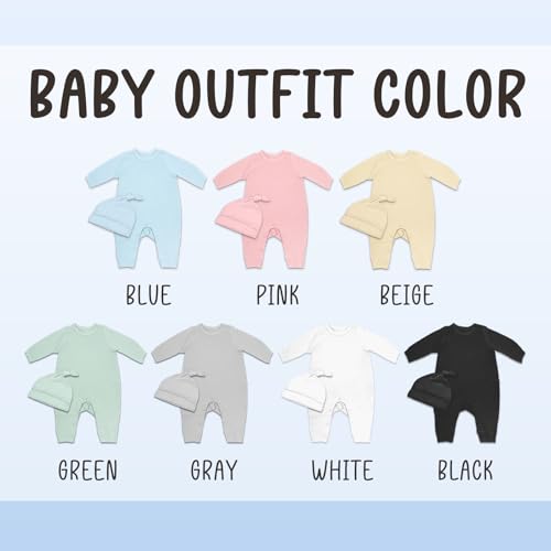 Click for More Images Customized with Love: Personalize your baby's first outfit with their name beautifully printed on the unisex romper and matching hat. Perfect for newborn boys & girls, 0-3 months, and 3-6 months, making it a must-have item...