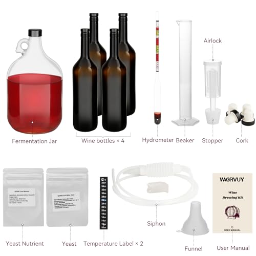 Click for More Images North Mountain Supply 1 Gallon Glass Fermenting Jug with Handle, 6.5 Rubber Stopper, Twin Bubble Airlock, Black Plastic Lid, 3-Pack Yeast Assortment, and 3.5 Ounce Yeast Nutrients.Red Star 3-piece Variety Pack (Premier...