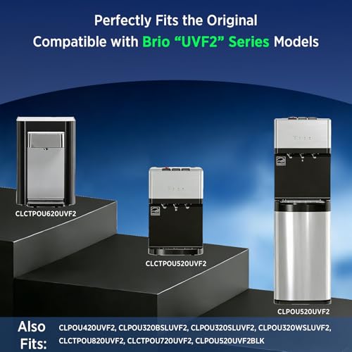 Click for More Images Perfectly Fits the Original - Compatible with Brio UVF2 Series Models Bottleless Water Cooler Dispensers - Exact replacement for Brio 2-Stage Water Cooler Dispensers, including CLPOU520UVF2, CLCTPOU520UVF2, CLCTPOU620UVF2,...
