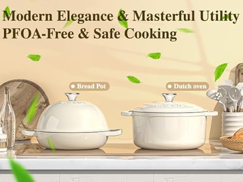 Click for More Images Achieve Professional Artisan Bread at Home - Expertly designed for bread baking, this 6 qt cast iron bread oven creates the ideal steam baking environment. Crafted from high-quality cast iron, it ensures superior heat...