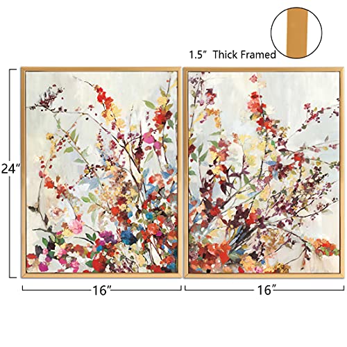 Watercolor Floral Artwork Size:16″x24″ with 1.5 Inch frame,total 2 piece per set.