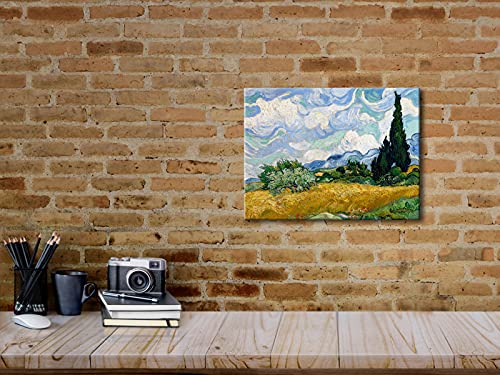 Wieco Art Wheat Field with Cypresses by Van Gogh Famous Oil Paintings Reproduction Modern Framed Landscape Giclee Canvas Prints Artwork Pictures on Canvas Wall Art for Home Office Decorations