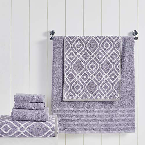 Modern Threads Amrapur Overseas 6-Piece Yarn Dyed Oxford Stripe Jacquard/Solid Ultra Soft 500GSM 100% Combed Cotton Towel Set [Grey Lavender]