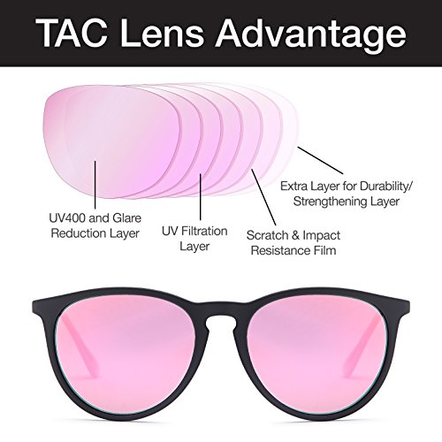 The lenses of these glasses are TAC Polarized with 100% UV400 protection lenses to guard against harmful UVA and UVB rays. Multiple lens layer technology enables polarization, durability, UV protection and shatterproof features.