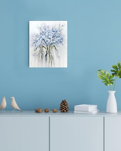Click for More Images Blue Flower Bouquet Wall Art: The abstract depiction showcases the elegance and beauty of the flowers, with soft and vibrant blue blossoms that resemble a lively painting, bringing joy and warmth to your spaceFlower Pictures...