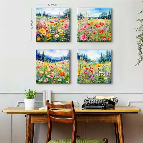 Click for More Images ?Colorful Wildflower Canvas Wall Art Size? - 12" x 12" x 1pcs(30cm x 30cm x 4). Abstract daisy flower wall art nature landscape pictures decor, colorful daisy poppy floral scenery wall art, mountain forest wall decor for...