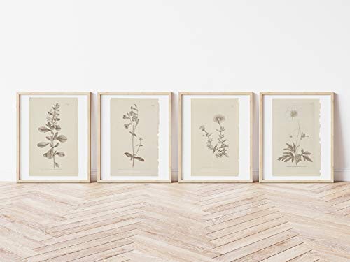 Click for More Images INSPIRED BY VINTAGE BOTANICAL STUDIES - These botanical study prints are from our actual collection of antique textbook botanicals which we have been collecting for years. This 4-piece floral graphic art print set is in the...