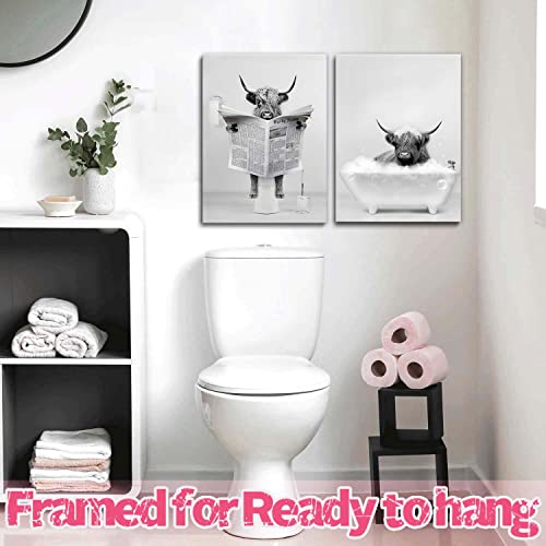 Click for More Images Fun highland cow wall art: Ready to hang The size of the Bathroom cow wall art set is: 12x16 inches (30x40 cm)*2 pieces.Bathroom cow wall art: canvas printing, wet wipe easy to clean, no oil painting smell, more safe, more...