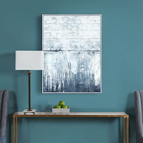 Click for More Images Modern Abstract Wall Art: This beautiful painting is calming with cool strokes of blue and white tones, the color contrast highlight aesthetic abstract print canvasVibrant Canvas Prints Artwork: The blue and white wall art...